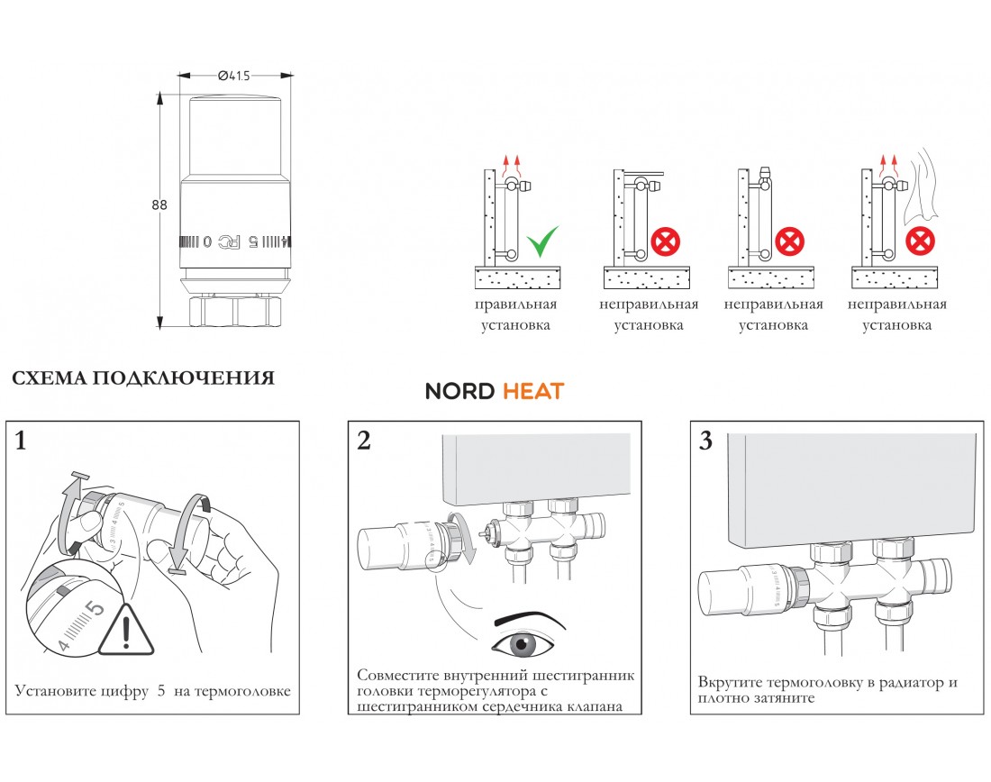 Термостатическая головка подходит к клапану с присоединительной резьбой M30х1,5.