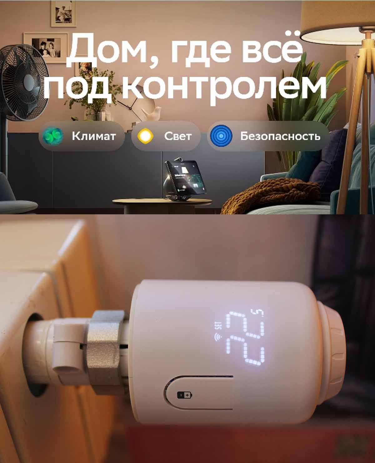 При использовании термостата в системе "умного дома" появляется возможность объединить несколько приборов отопления в группы по комнатам, этажам, домам и управлять ими дистанционно, в том числе при помощи голосового помощника "Салют".