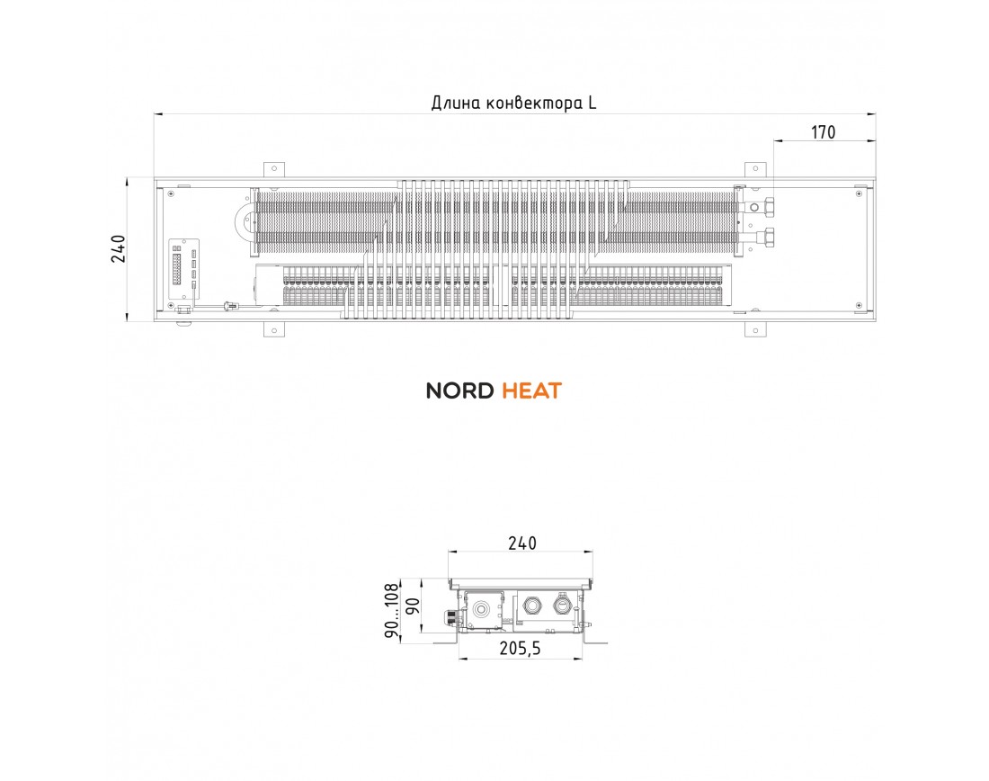 Для безопасности узел подключения и электронный блок конвектора закрывается стальной панелью, окрашенной в цвет теплообменника.