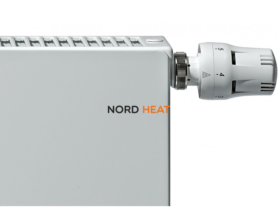 Для установки на стены с низкими подоконниками, а так же на ножки под паноорамные окна, с возможным подсоединением снизу из пола. Оснащен термостатической вставкой для изменения уровня обогрева.