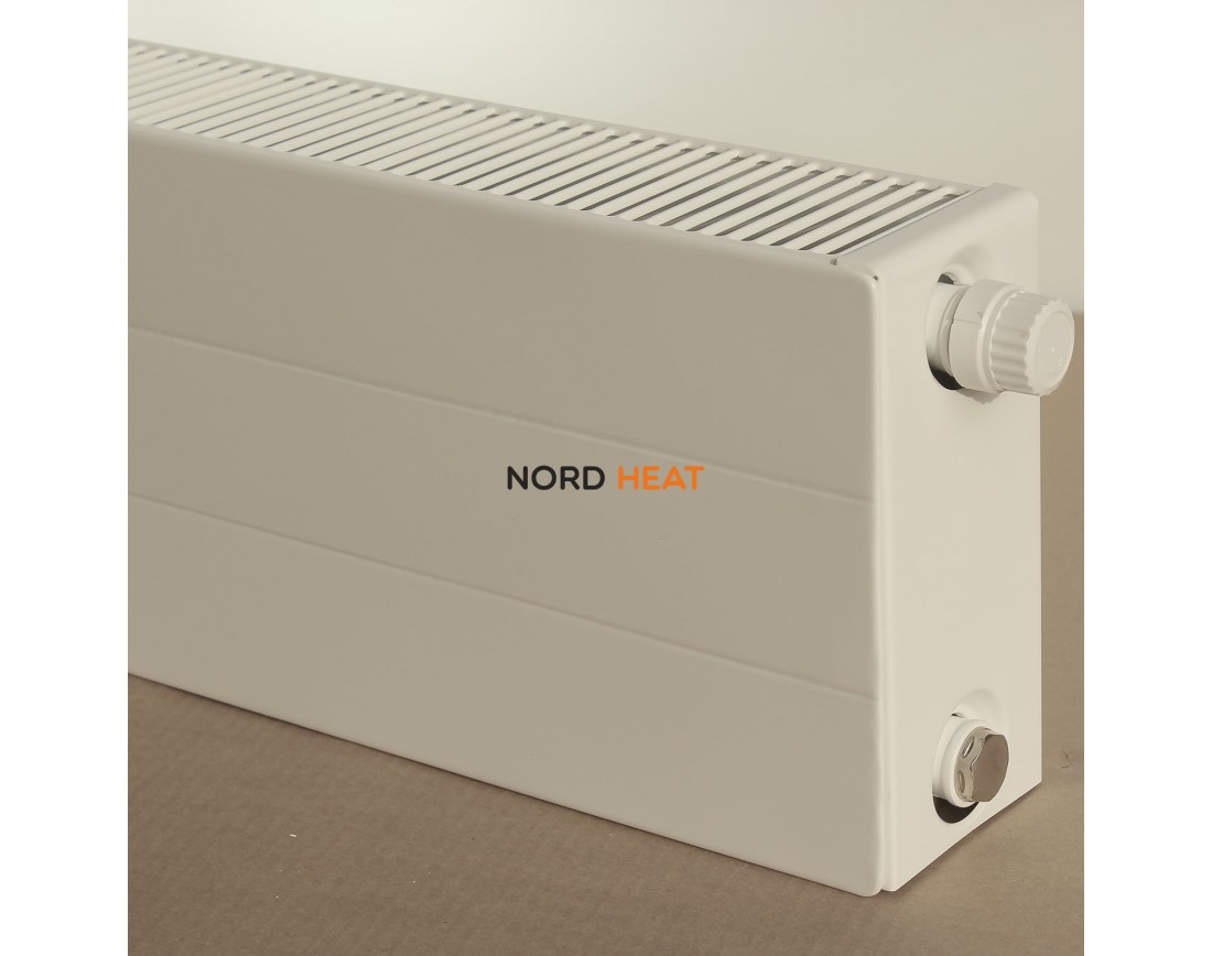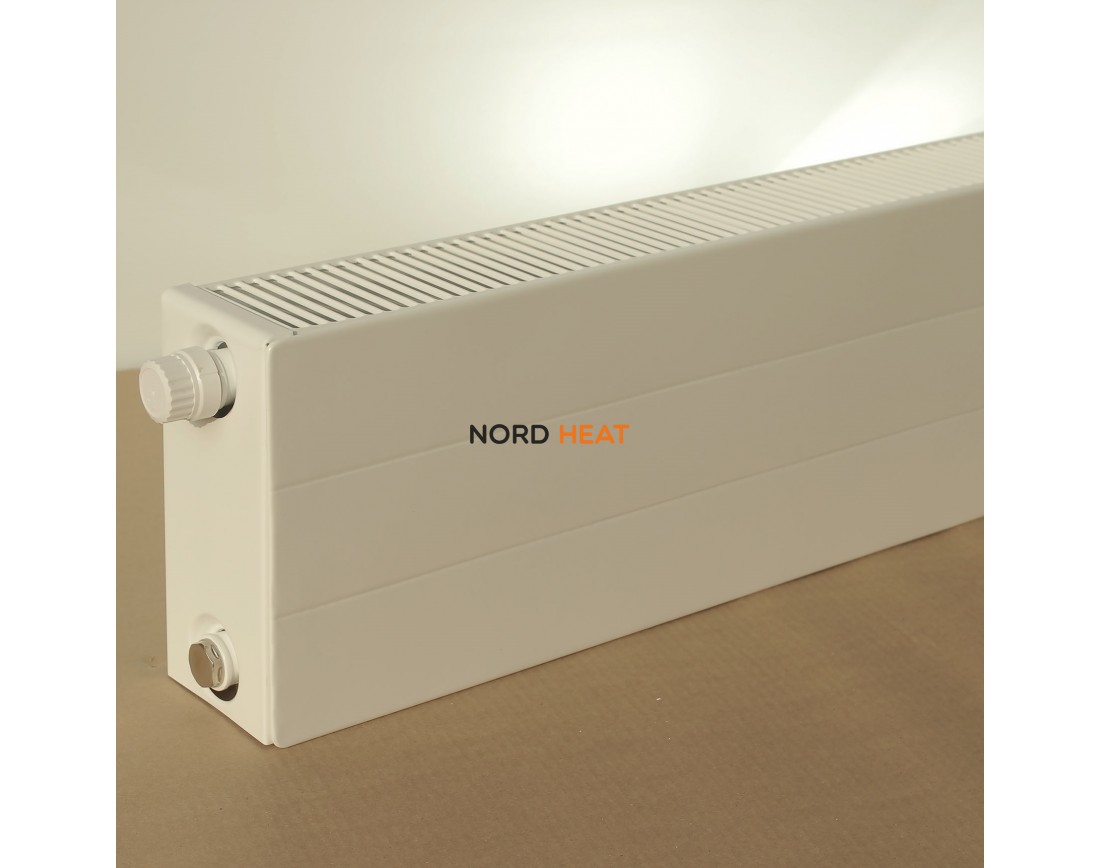 Декоративный стальной панельный радиатор EVRA RAMO VENTIL COMPACT высотой 200 мм длиной 1000 мм глубиной 157 мм с 3 профилированными греющими панелями и 3 конвекционными элементами.