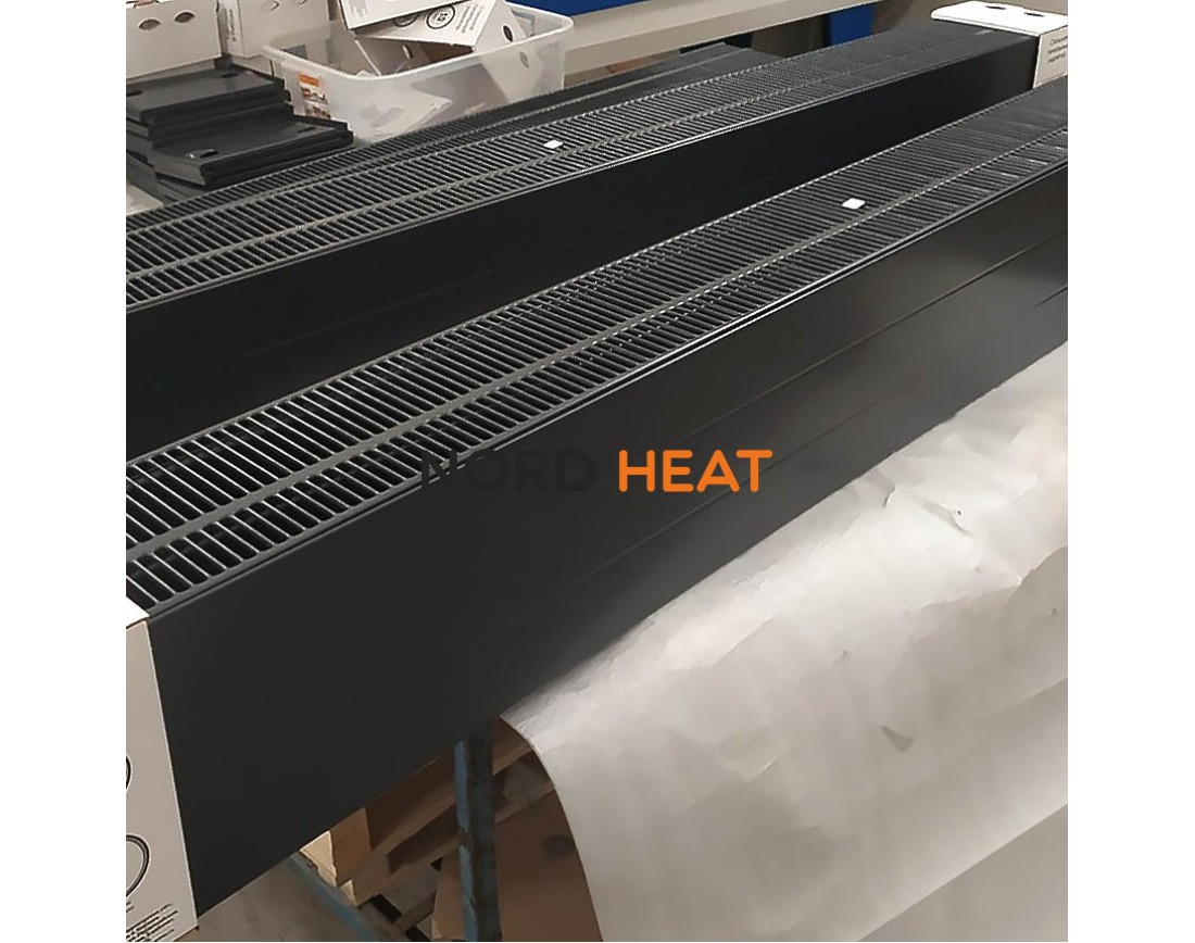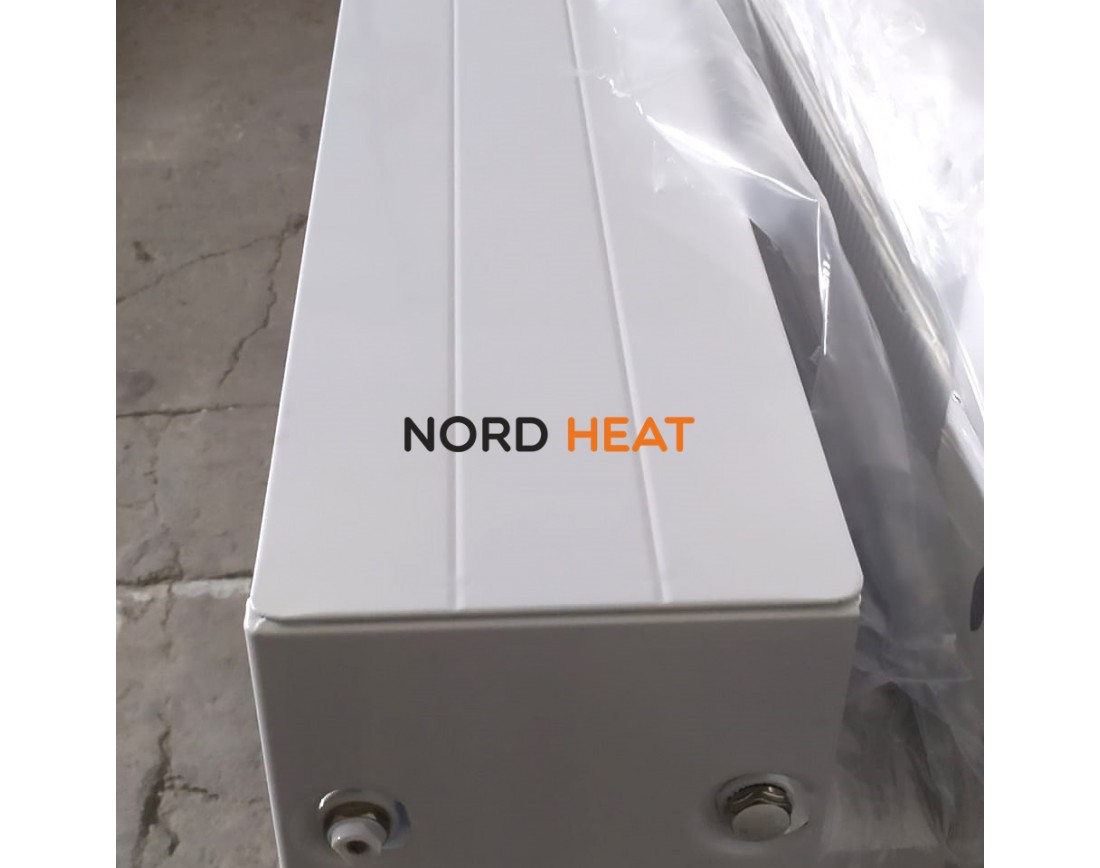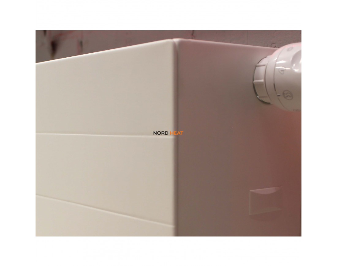 Горизонтальный декоративный радиатор EVRA RAMO VENTIL COMPACT имеет плоскую лицевую панель с продольными бороздками и аккуратно скругленными краями, а также боковые накладки с надежной системой крепления, что исключает появление люфтов или щелей в процессе эксплуатации.