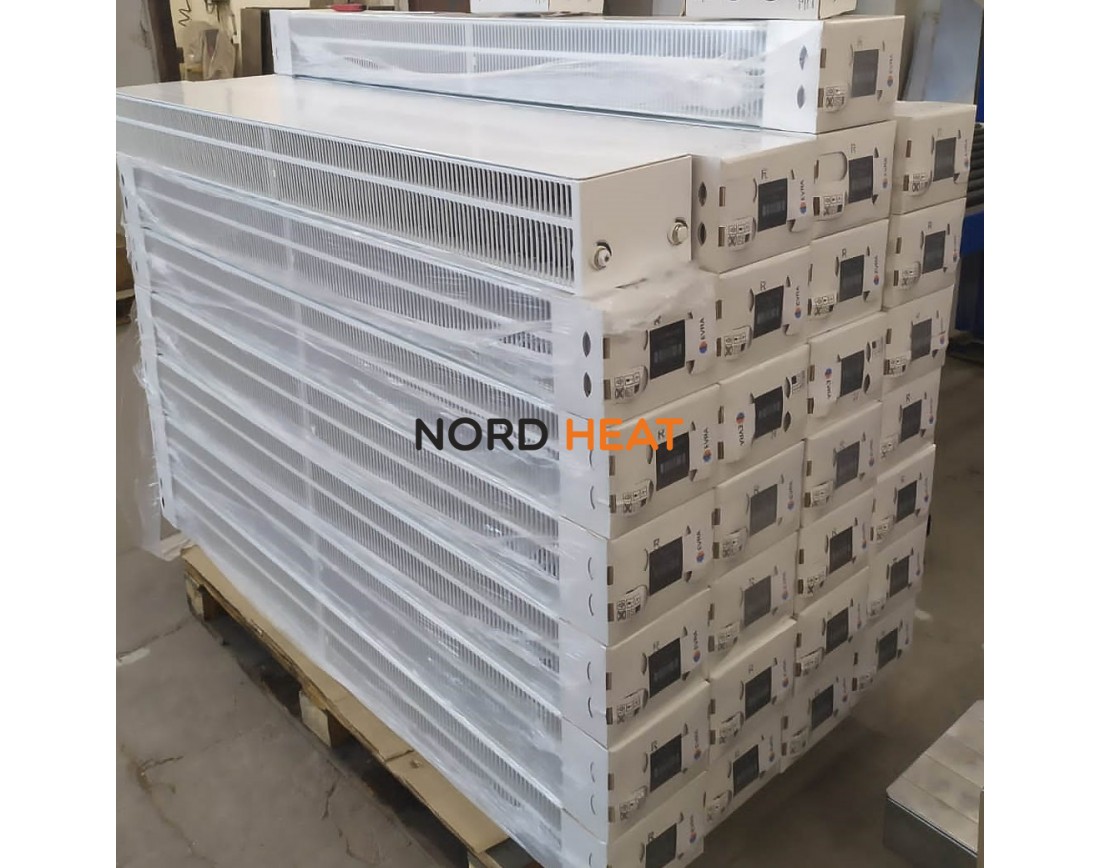 Декоративный стальной панельный радиатор EVRA VENTIL COMPACT высотой 200 мм длиной 1200 мм глубиной 155 мм с 3 профилированными греющими панелями и 3 конвекционными элементами.