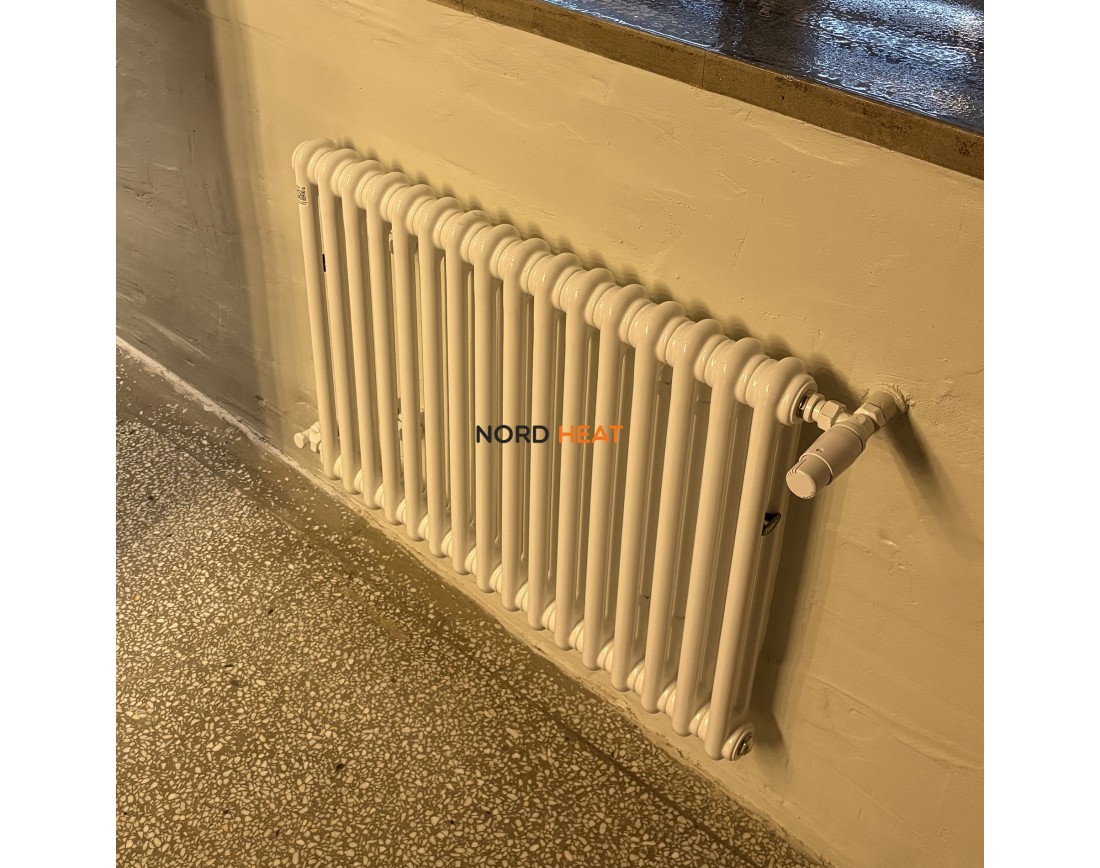 Представляет собой дизайнерский радиатор из 16 секций, по две трубки в секции.